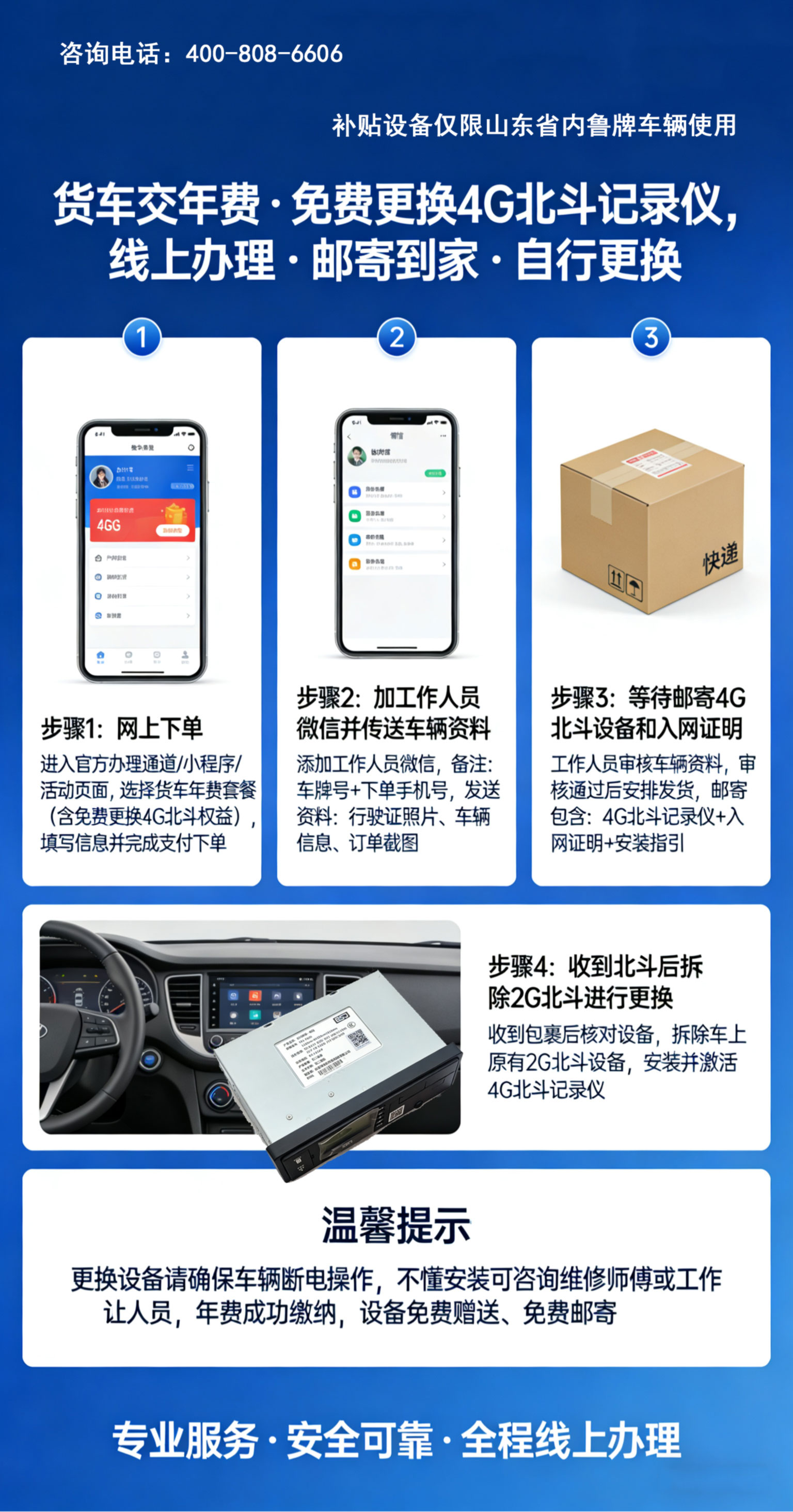 山東省貨車司機專屬福利,交北斗年費,免費贈送4G北斗記錄儀,0元領設備,領完即止