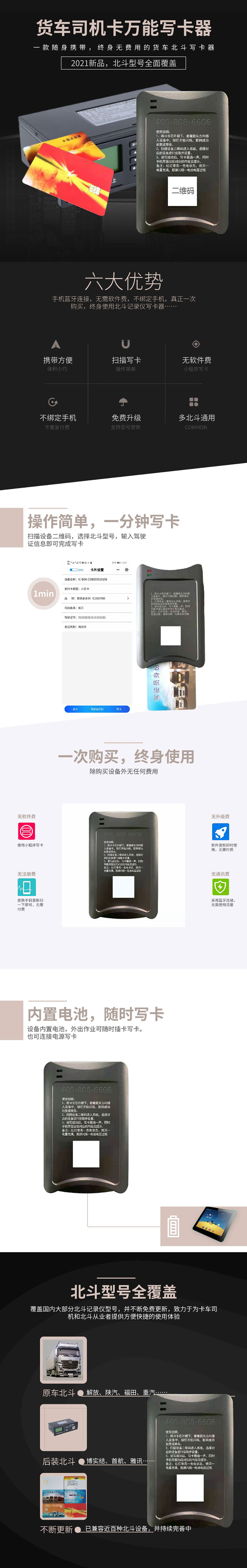 同時支持大多數貨車廠家自帶的北斗記錄儀司機卡信息的寫入和更改如解放、陜汽、重汽、福田、東風等等